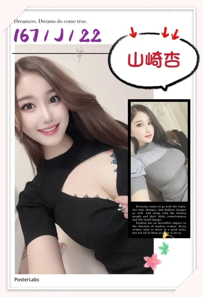 山崎杏台北外送茶美艷亮麗、擁有真J雪奶的女孩首次登場,她皮膚白皙柔嫩,胸部非常豐滿。她提供多樣化的服務,包含舌吻、69,甚至可以配合兩女一男的特殊要求。她也能用英文溝通,並且可以配合角色扮演(需自備服裝)。她是真胸且身上沒有刺青。